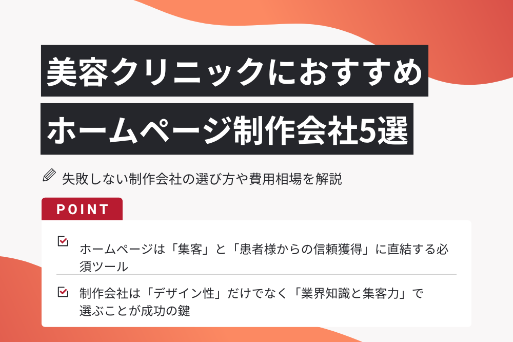 本記事では、美容クリニックの集客に強いおすすめのホームページ制作会社5社を厳選してご紹介します。