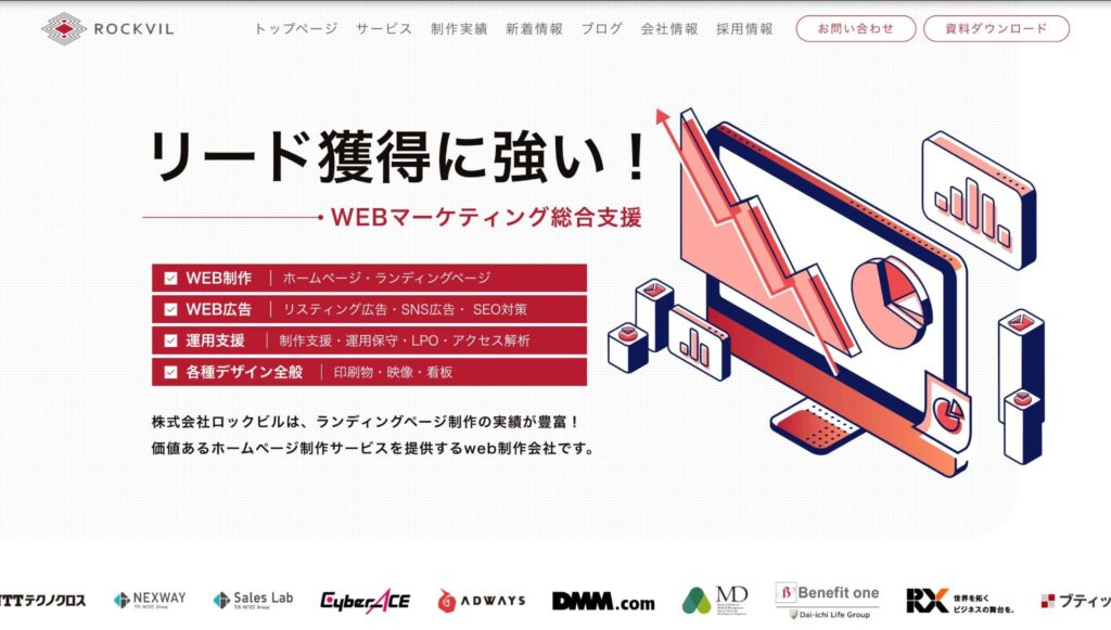 | 株式会社ロックビル | LP・Web制作の実績が豊富。データに基づいた論理的な改善提案で売上向上に直結させる |