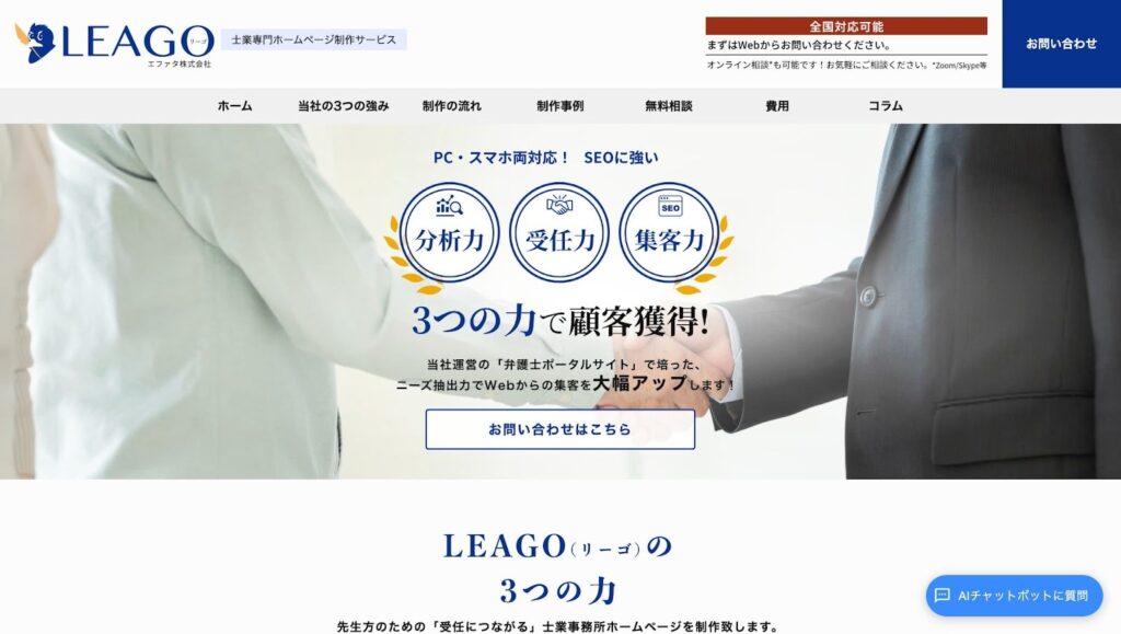 弁護士をはじめとする士業の集客支援にも対応しており、豊富な制作経験から培った独自のノウハウが魅力です。