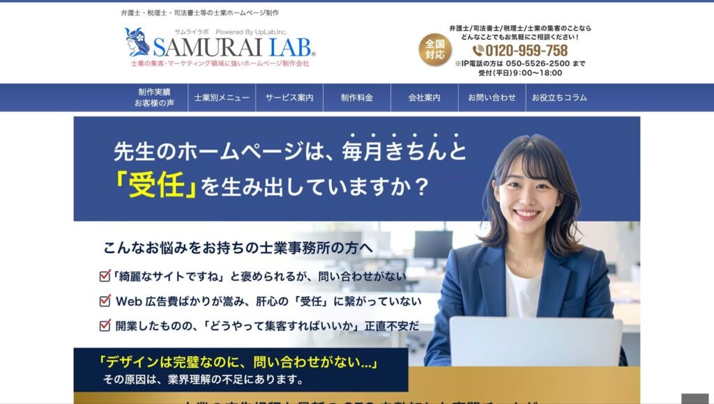 サムライラボを運営する株式会社アップラボは、法律系士業に特化したホームページ制作企業です。