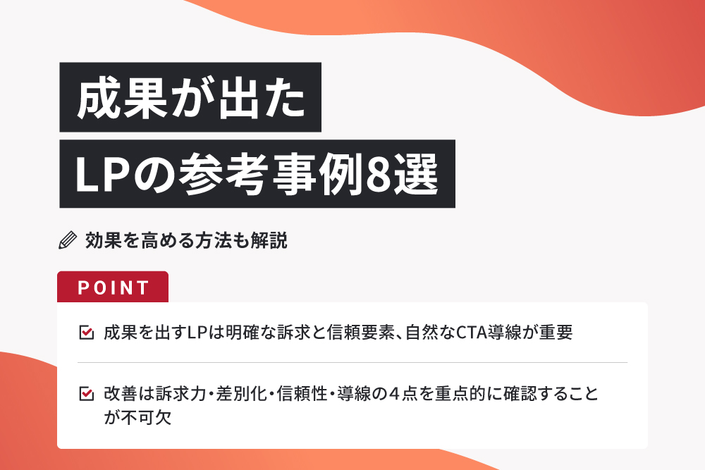 改善の際は「訴求が一目で伝わるか」「差別化が明確か」「信頼要素が十分か」「CTA導線が自然か」を点検することが重要です。
