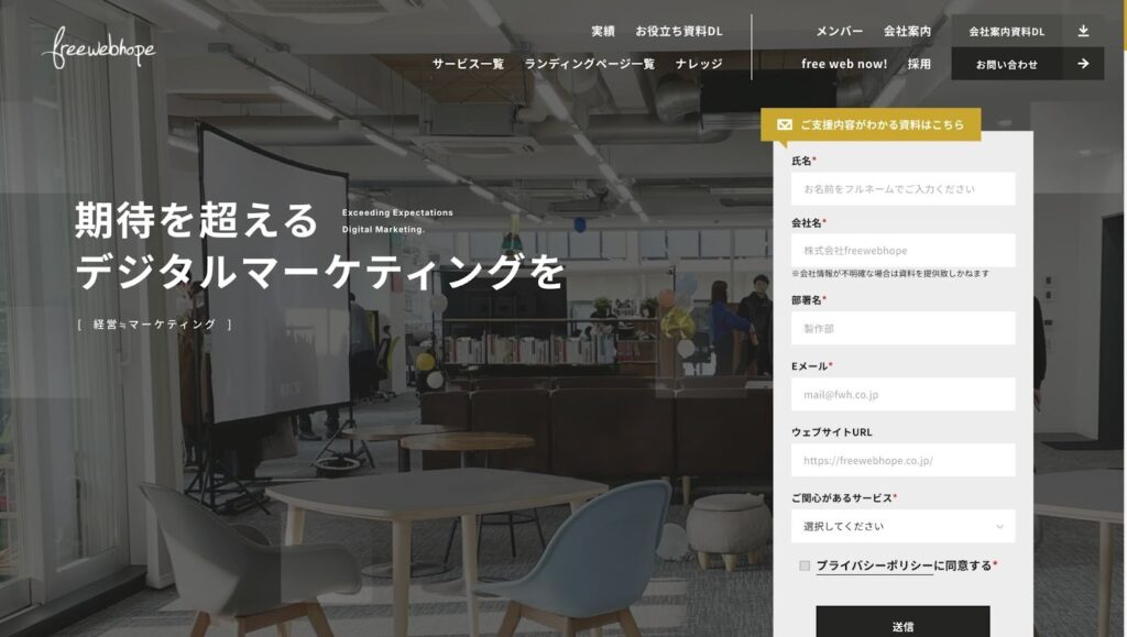 株式会社FREEWEBHOPEは、「売れるLP」の制作に特化し、独自のマーケティング理論に基づいた構成力に定評がある会社です。