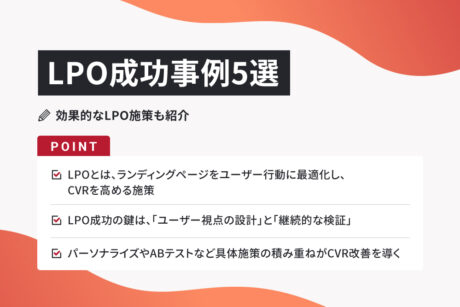 LPからのコンバージョンが伸び悩んでいる企業にとって、LPO(ランディングページ最適化)は改善の鍵を握る手法です。LPOとは、ランディングページをユーザー行動に最適化し、CVRを高める施策です。 単なるデザイン変更やコピー