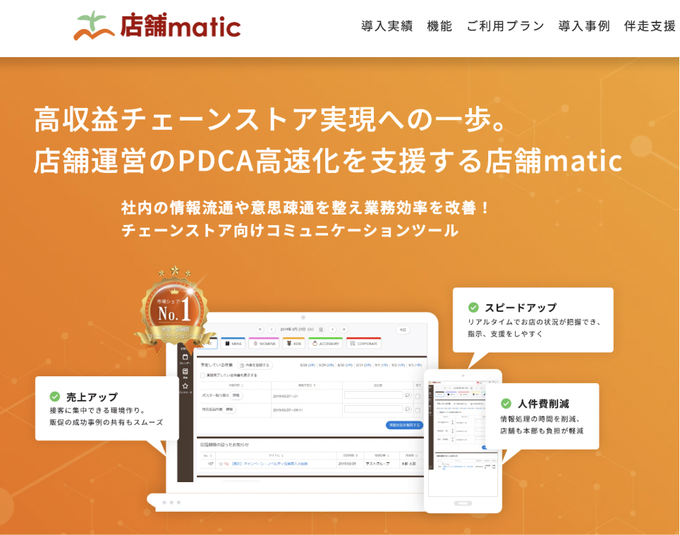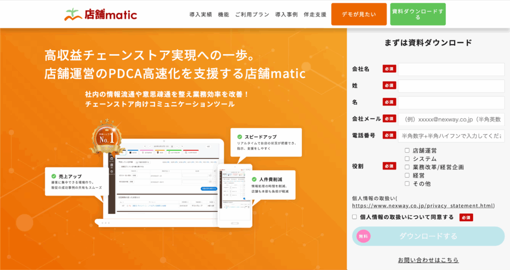 店舗maticのLPは、チェーンストアや多店舗運営企業の「情報共有の非効率」を軸に構成されています。