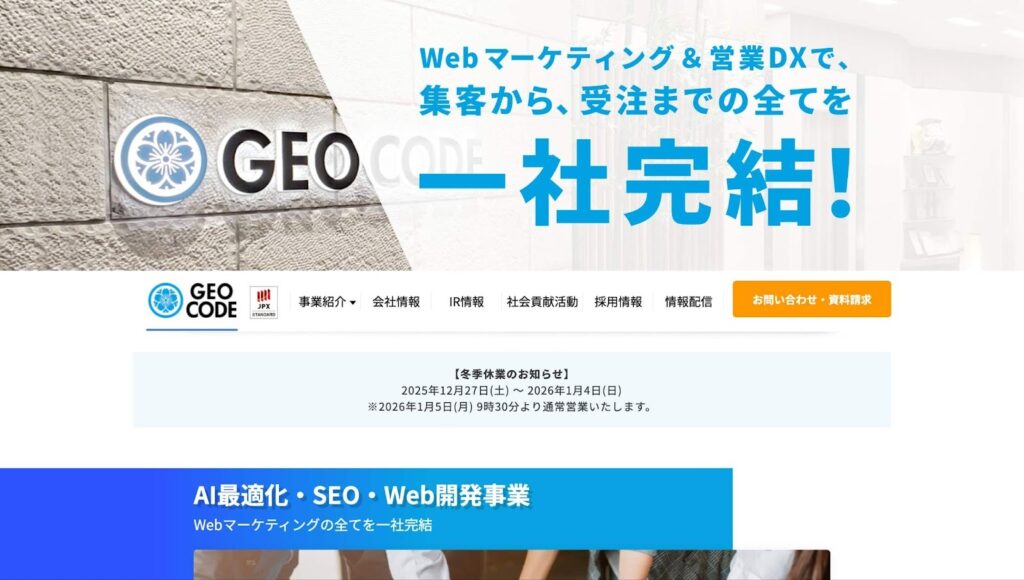 株式会社ジオコードは、SEO対策とWeb制作をワンストップで提供する、Webマーケティングに特化した上場企業です。