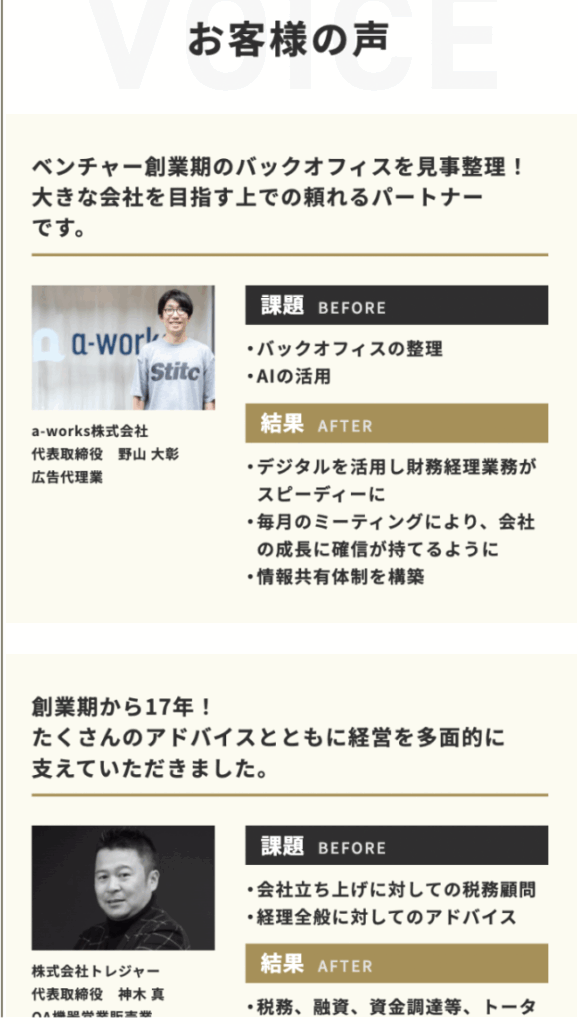 ここでは、弊社で制作した税理士法人と法律事務所のLPを参考に、それぞれの特徴と工夫を分析します。